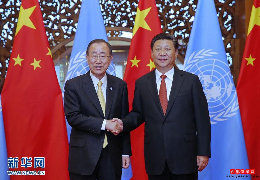 習(xí)近平歡迎潘基文出席9月二十國集團領(lǐng)導(dǎo)人杭州峰會。習(xí)近平指出,中方高度重視并同聯(lián)合國在發(fā)展和氣候變化等問題上開展了密切合作,取得了重要進展。中方推動二十國集團領(lǐng)導(dǎo)人峰會聚焦發(fā)展問題,推動共建“一帶一路”,就是要助力2030年可持續(xù)發(fā)展議程。中方倡導(dǎo)設(shè)立亞投行,并愿同聯(lián)合國、世界銀行等國際組織加強合作,就是要同世界各國分享中國的發(fā)展機遇。