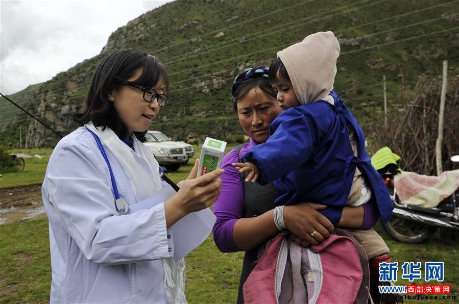 7月17日,北京大學(xué)第三醫(yī)院婦產(chǎn)科李華教授(左)在巴爾卡村牧區(qū)向農(nóng)牧民贈(zèng)送藥品。當(dāng)日,來(lái)自北京協(xié)和醫(yī)院、北京大學(xué)人民醫(yī)院、北京大學(xué)第三醫(yī)院等醫(yī)院的12名援藏醫(yī)療專(zhuān)家深入偏遠(yuǎn)的墨竹工卡縣門(mén)巴鄉(xiāng)巴爾卡村,為農(nóng)牧民義診。新華社記者 張汝鋒 攝
