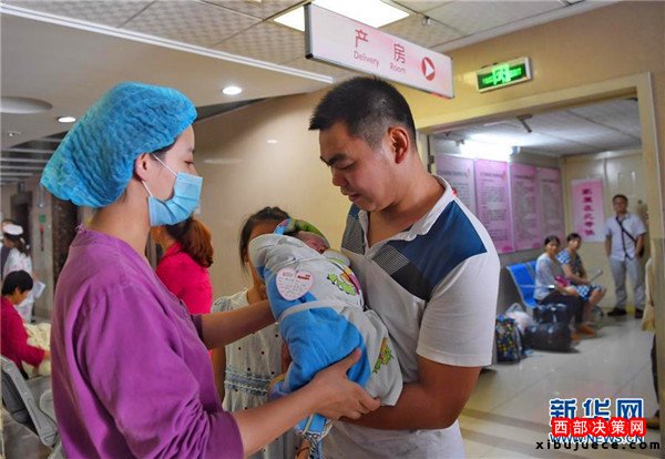 新橋醫(yī)院婦產(chǎn)科病房,剛出生的小寶寶與父親汪飛波(右)見(jiàn)面。