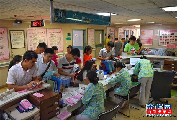 新橋醫(yī)院婦產(chǎn)科護(hù)士站,站滿了前來(lái)咨詢和辦理出入院的孕婦家屬。