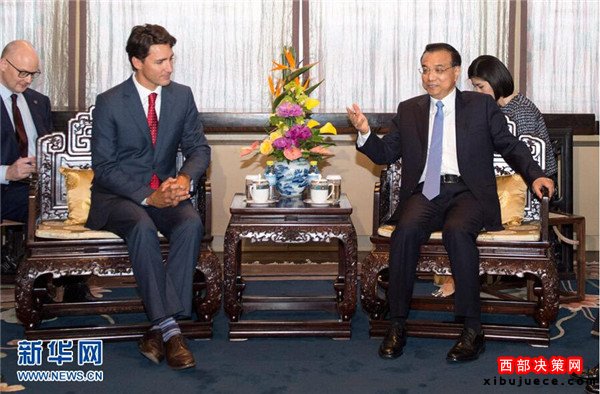 國(guó)務(wù)院總理李克強(qiáng)30日下午在北京會(huì)見(jiàn)來(lái)華進(jìn)行正式訪問(wèn)的加拿大總理特魯多。