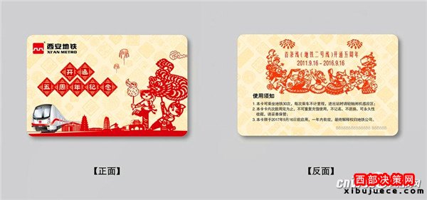 “西安地鐵開(kāi)通5周年紀(jì)念卡”正反面。