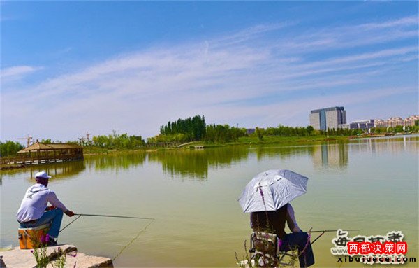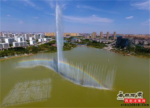 9月4日,“文博會網(wǎng)絡(luò)宣傳周”采訪團(tuán)75家媒體近百名記者一行走進(jìn)蘭州新區(qū)時,就被碧波蕩漾的2號湖濱區(qū)所吸引,湖邊盛開著紅的、黃的、紫的鮮花,湖里隱約可見各種彩色的錦鯉,游人或愜意地在湖邊垂釣,或聚集在觀景臺欣賞音樂噴泉,或悠然自得地泛舟湖上。