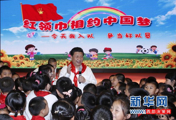 ?。?014年5月30日,習(xí)近平來到北京市海淀區(qū)民族小學(xué),參加慶祝“六一”國際兒童節(jié)活動。這是習(xí)近平在參加少先隊(duì)入隊(duì)儀式時(shí),向少先隊(duì)員們致以節(jié)日問候。新華社記者鞠鵬攝)