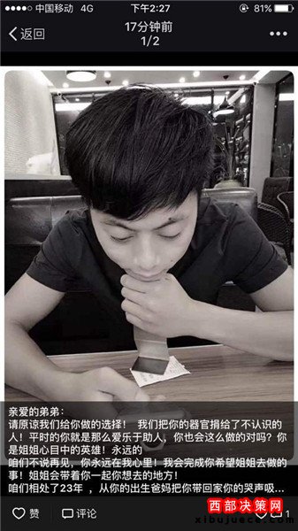 據(jù)了解,22歲的吳遠旋在東莞鳳崗工作。9月3日凌晨五點,他騎摩托車送友人上班時,不幸發(fā)生車禍,導(dǎo)致重度顱腦外傷,達到腦死亡狀態(tài)。家屬召開家庭會議后,決定把吳遠旋所有的重要器官捐獻出來,救助他人。