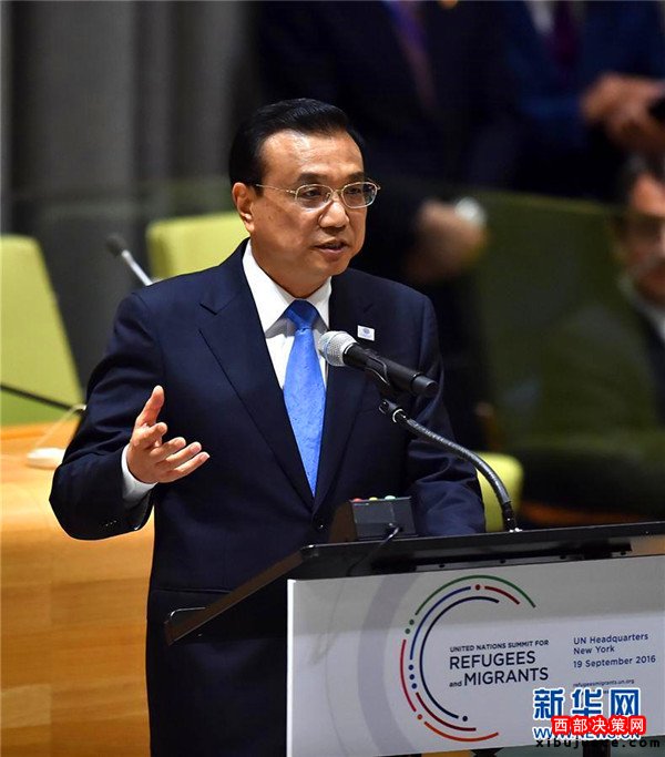 國務(wù)院總理李克強當?shù)貢r間19日上午在紐約聯(lián)合國總部出席第71屆聯(lián)大解決難民和移民大規(guī)模流動問題高級別會議并發(fā)言。