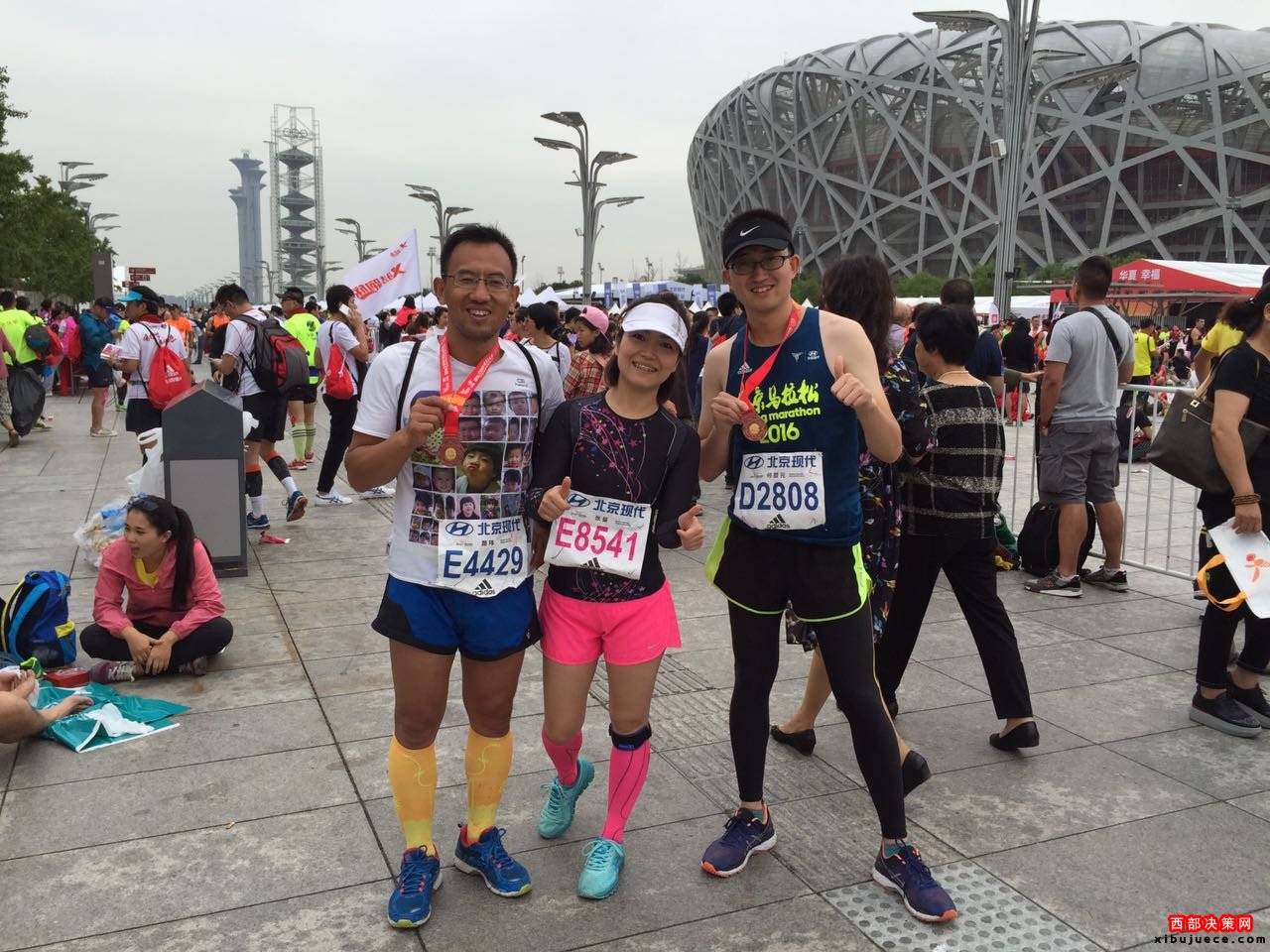 西部決策網(wǎng)甘肅訊(帥華鋒 杜杰)9月17日,2016北京現(xiàn)代北京馬拉松賽事于天安門正式鳴槍起跑,來自全球30多個國家和地區(qū)的3萬名跑者沿長安街西行,途經(jīng)復(fù)興門橋、昆玉河、海淀南路等地,向位于奧林匹克森林公園中心慶典廣場的終點線發(fā)起沖擊。經(jīng)過頑強拼搏,甘肅蘭馬跑團出色的完成了全部賽事,并取得個人最佳成績。