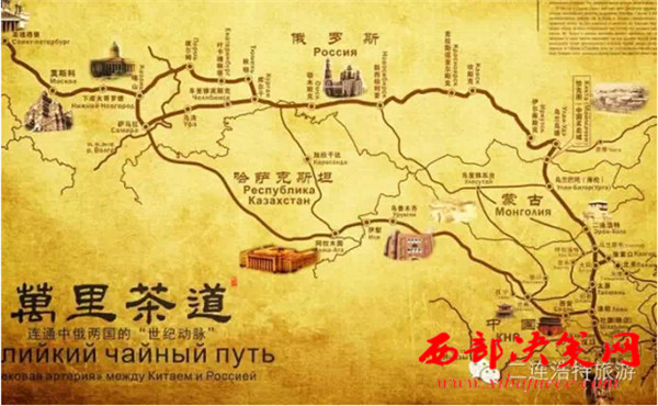 萬里茶道是歐亞大陸上始于18世紀初并延續(xù)約兩個半世紀的一條重要國際商道,從福建武夷山市起,途經(jīng)江西、湖南、湖北、河南、山西、河北、內(nèi)蒙古等7省區(qū),經(jīng)庫倫(現(xiàn)蒙古國首都烏蘭巴托)到達中俄邊境的通商口岸恰克圖,全程約4760公里。茶道在俄羅斯境內(nèi)繼續(xù)延伸,再傳入中亞和歐洲其他國家,使茶葉之路延長到13000公里之多,成為名符其實的“萬里茶道”。