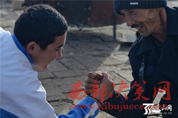 吐?tīng)柡拱鸵掠檬肿呗匪氖?,使得胳膊粗壯有力,工人們調(diào)侃父子倆,扳手腕誰(shuí)能贏?
