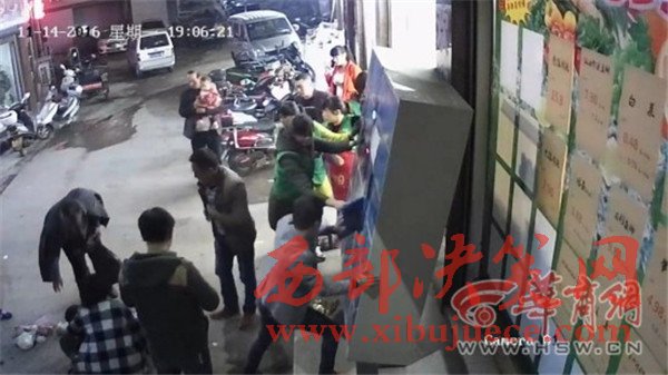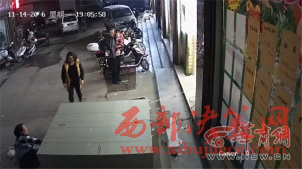 胡先生調(diào)取了事發(fā)時(shí)超市監(jiān)控視頻,華商報(bào)記者在視頻里看到:11月14日19時(shí)05分,一名婦女帶著小男孩走出超市,來到超市門口擺放的儲(chǔ)物柜取物。就在這名婦女剛拿出物品的一剎那,近兩米高的儲(chǔ)物柜突然倒下砸中兩人。巨大的儲(chǔ)物柜將孩子整個(gè)壓在了下面,婦女雙腿被壓住。周圍群眾幫助抬起了儲(chǔ)物柜。華商報(bào)記者注意到,從婦女取物到柜子倒下,事發(fā)經(jīng)過不到十秒鐘。
