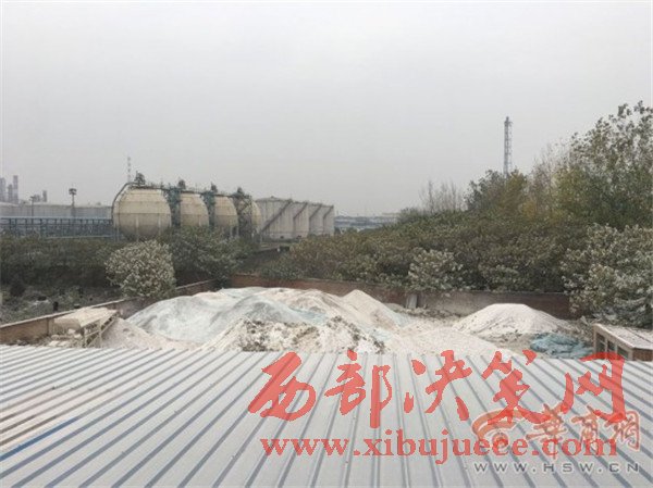 記者觀察附近建筑物,發(fā)現(xiàn)還有部分房頂上鋪滿白色粉塵,而樹上的樹葉也都是白的。知情人說,煤場旁邊的巷子里還有個灰場。