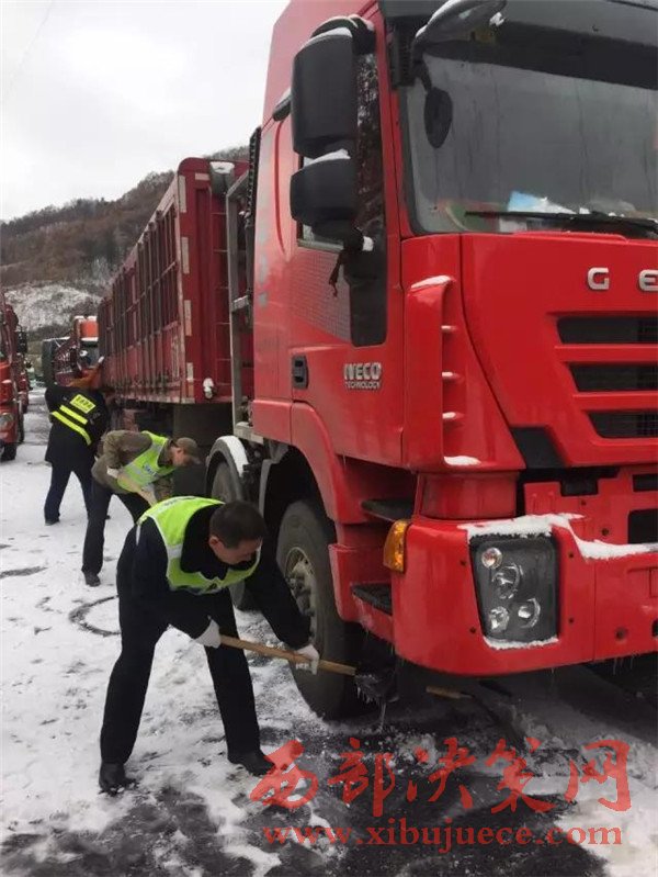 經(jīng)過一夜努力,全線目前已疏導(dǎo)爬坡困難車輛2000余輛,無安全事故發(fā)生,無人員傷亡事件,滯留司乘情緒穩(wěn)定,都在耐心等待道路疏通。西安到漢中方向高速已經(jīng)在今晨5點順利搶通。截止今天中午11時,澇峪口管制點以北積壓車輛4公里,已經(jīng)開始間歇放行;寧陜服務(wù)區(qū)管制點以南積壓車輛5公里,選擇分流210國道的部分車輛已從寧陜收費站駛離西漢高速。秦嶺主梁附近路段西安方向多處擁堵點也已基本疏通,由于積壓車輛較多,路面有結(jié)冰,車輛行駛依然比較緩慢。