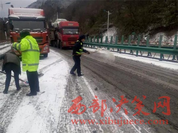 陜西高速集團西漢分公司緊急啟動預(yù)案,所有工作人員包括路政、養(yǎng)護,消防、機關(guān)管理、收費班倒休人員,全部上路進行疏導(dǎo)保暢,高速集團主要領(lǐng)導(dǎo)第一時間趕往現(xiàn)場指揮疏導(dǎo)。西漢分公司出動了所有的除雪設(shè)備,撒播融雪劑和防滑沙,對造成擁堵的車輛實行緊急救援,采取生火解凍油路,路面鋪砂解決防滑,拖車清除事故車輛等方式疏導(dǎo)擁堵點。同時還從關(guān)中和陜南緊急調(diào)撥除雪設(shè)備和人員上路除雪,全力幫扶困在路上的車輛和人員,機關(guān)管理和收費人員在車輛被困路段及時向被困人員解釋道路擁堵情況,積極幫助受困人員,送去了礦泉水、面包和火腿腸等應(yīng)急食品。