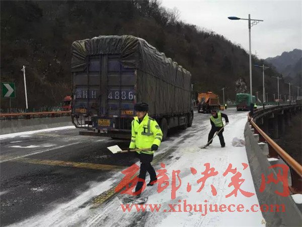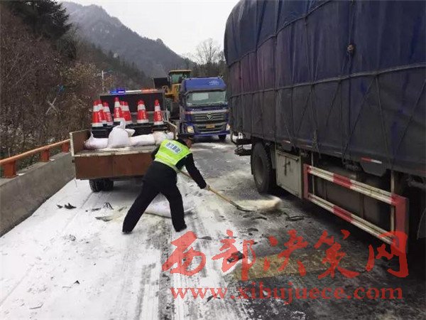 昨天寧陜境內(nèi)持續(xù)發(fā)布寒潮藍(lán)色預(yù)警,連續(xù)的雨雪、降溫、大風(fēng)造成最低溫度降幅10度以上,山區(qū)最低氣溫達(dá)到零下6度,對交通運輸造成了較大影響。由于部分大型運輸車輛沒有及時更換防凍柴油,油路受凍無法啟動,部分緩坡路面結(jié)冰,載重車輛原地打滑,還有個別車輛由于路面濕滑造成的單方交通事故等原因造成了大面積擁堵。