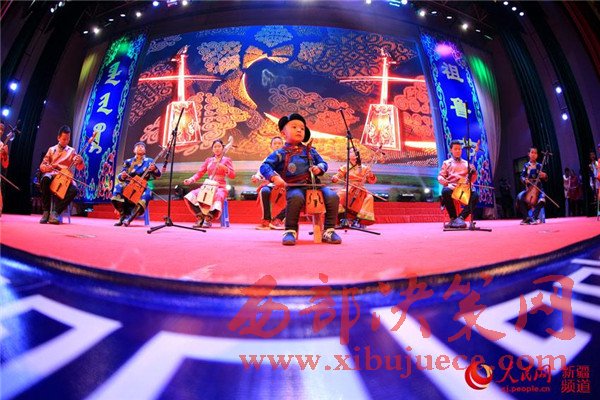 11月22日,博湖縣“祖魯節(jié)”晚會現(xiàn)場,當?shù)厍嗌倌瓯硌蓠R頭琴齊奏《開都河》。