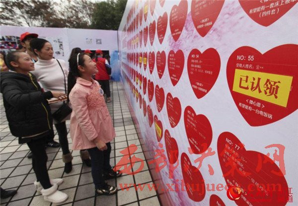 02-愛心墻前,市民和學生在看需要認領的微心愿。