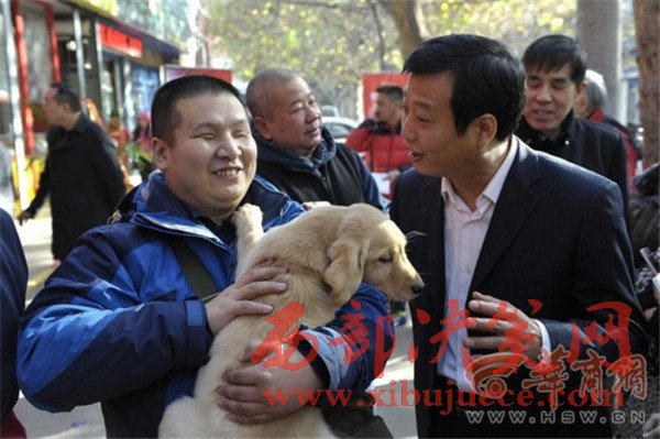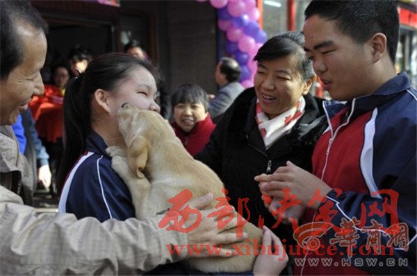 “這個(gè)毛茸茸的小家伙真可愛!”家住西門外的楊子宣抱著一只拉布拉多犬高興地合不攏嘴。