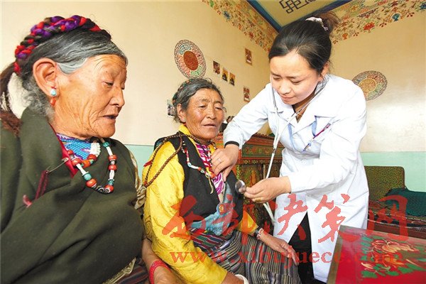 五保集中供養(yǎng)工程,是我區(qū)出臺的一項重大民心工程和德政工程。如今我區(qū)的孤寡老人們在黨和政府的關(guān)懷下,生活起居得到了有效保障,實(shí)現(xiàn)了老有所養(yǎng)、老有所樂、病有所醫(yī)。圖為日喀則市桑珠孜區(qū)敬老院的醫(yī)護(hù)人員在為老人們檢查身體。