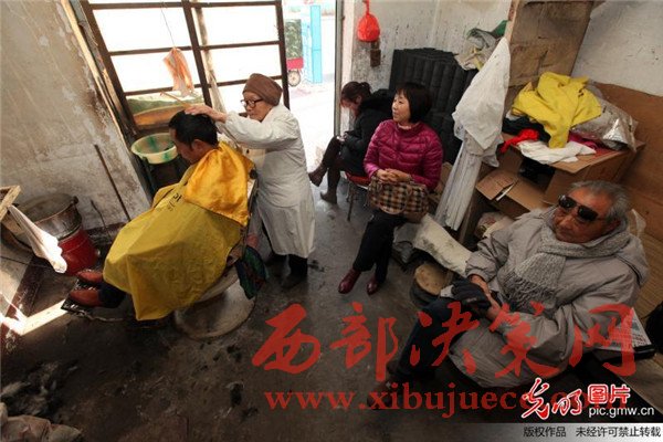 蔡瑞云幾十年來一直在河南許昌市區(qū)解放路與新興路交會(huì)處經(jīng)營著她的"老中青理發(fā)店"。雖然店面只有10平方米,每月房租300元,但每次理發(fā)收費(fèi)卻只有2元,讓人感受到的是溫暖。