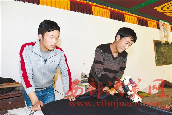 圖為曲水縣索朗雅卓縫紉農民專業(yè)合作社的社員正在裁剪布料。