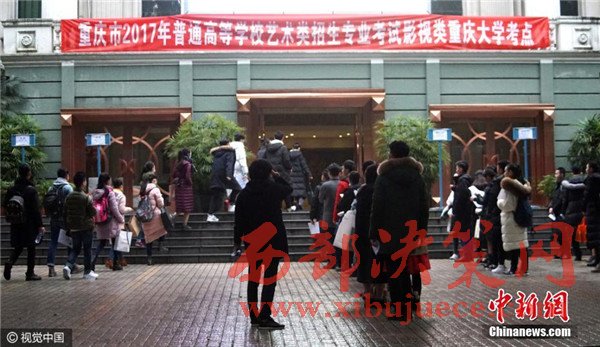 12月14日,重慶市,沙坪壩區(qū),重慶大學(xué)美視電影學(xué)院考點(diǎn),考生們走進(jìn)考場(chǎng)。當(dāng)天,重慶市2017年普高藝術(shù)類招生專業(yè)考試開考,考場(chǎng)外云集了大量夢(mèng)想明星生涯的美女帥哥以及前來(lái)陪伴的親朋好友。