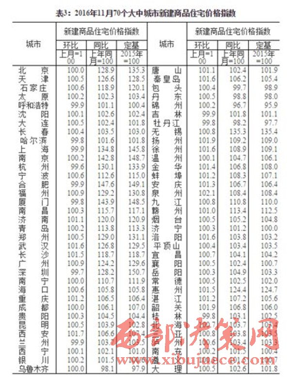 原標(biāo)題:國(guó)家統(tǒng)計(jì)局:11月70城房?jī)r(jià)降溫 西安漲幅全國(guó)第4