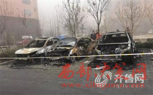 早晨六七點鐘,有居民發(fā)現(xiàn),停在小區(qū)樓下的幾輛汽車著火了。小區(qū)居民表示,當(dāng)時聽見響,還以為撞車了,一看原來是車著了,趕緊喊救火。