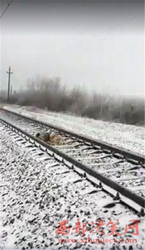 在嚴(yán)寒中,兩只狗狗在鐵軌上蜷縮了兩天,一動不動。Lucy受傷嚴(yán)重,沒法從鐵軌上挪動下來。Panda一直在她身邊保護(hù)她,用自己的身體為她保溫,當(dāng)有火車逼近時,Panda想盡辦法把Lucy的頭按下,讓火車可以在它們頭頂經(jīng)過。
