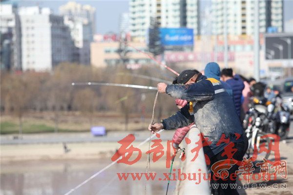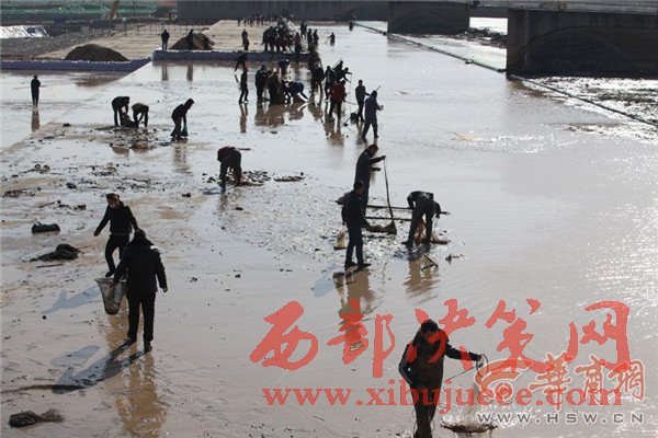 12月27日上午,咸陽湖放水剛結(jié)束,渭城橋下瞬間就變成了漁場,數(shù)百人在橡膠壩附近撿魚捕魚,有人甚至不顧危險跑到淤泥里去撈魚。咸陽湖管理處工作人員提醒,湖底淤泥情況不明,市民切勿涉險下湖撈魚,以免發(fā)生不測。