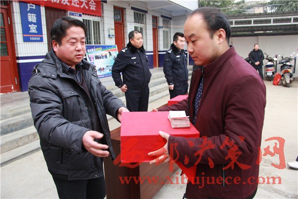 西部決策網(wǎng)訊(帥華鋒 杜杰 通訊員 邢亞洲)12月29日中午,隴縣公安局東南派出所召開贓物發(fā)還大會,為群眾發(fā)還現(xiàn)金44620元,群眾放起了鞭炮送來感謝信和錦旗表示感謝。。