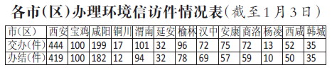 記者從我省環(huán)境保護(hù)督察巡查工作領(lǐng)導(dǎo)小組辦公室了解到,截至2017年1月3日,中央第六環(huán)境保護(hù)督察組共轉(zhuǎn)交我省環(huán)境信訪問(wèn)題1309件。截至1月3日18時(shí),全省按辦理期限已經(jīng)辦結(jié)并公布1198件,辦結(jié)率91.5%。其中寶雞、延安、韓城市已經(jīng)全部辦結(jié)。