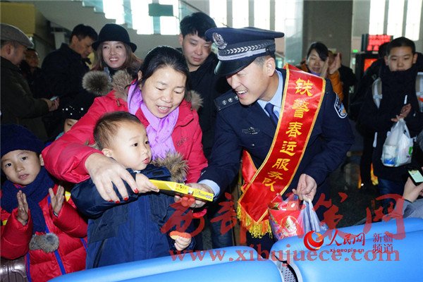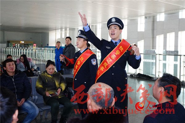 2017年鐵路春運(yùn)于1月13日正式啟動。為營造春運(yùn)良好氛圍,確保廣大旅客平安出行,新疆烏魯木齊鐵路公安局哈密公安處從機(jī)關(guān)和各派出所抽調(diào)100余名民警組建了10支“鐵警春運(yùn)服務(wù)小分隊”,在轄區(qū)吐魯番、哈密等四個客運(yùn)站和八個高鐵站,以開展防盜防騙宣傳、文藝互動演出、親民便民服務(wù)等舉措,打造“平安、有序、溫馨”春運(yùn)。