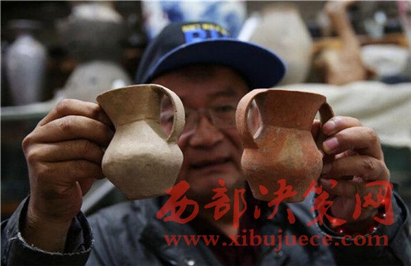 2016年9月23日,陜西榆林,“這件是遼代的石榴樽,你看上面的鴛鴦多漂亮。”劉福學(xué)打開他的木箱,向來客展示他的藏品。