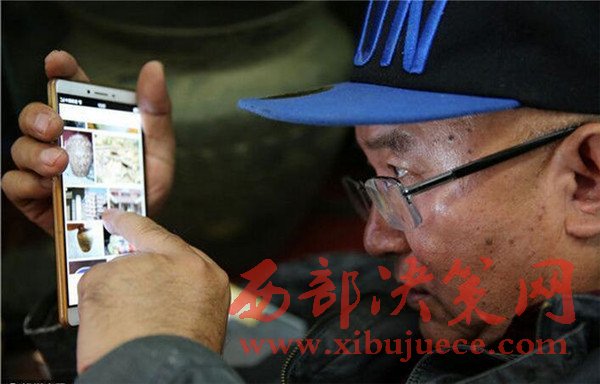 2016年9月21日,陜西榆林,劉福學(xué)通過微信等網(wǎng)絡(luò)平臺和收藏愛好者交流。