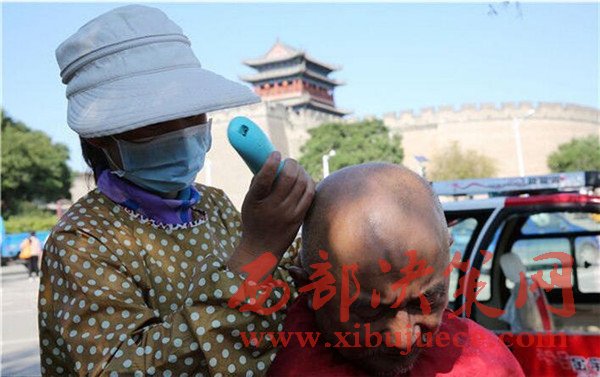 2016年9月21日,陜西榆林,劉福學(xué)把所有積蓄都用來收藏,生活節(jié)儉,頭發(fā)長了就在街頭的5元理發(fā)攤解決。