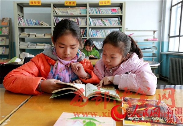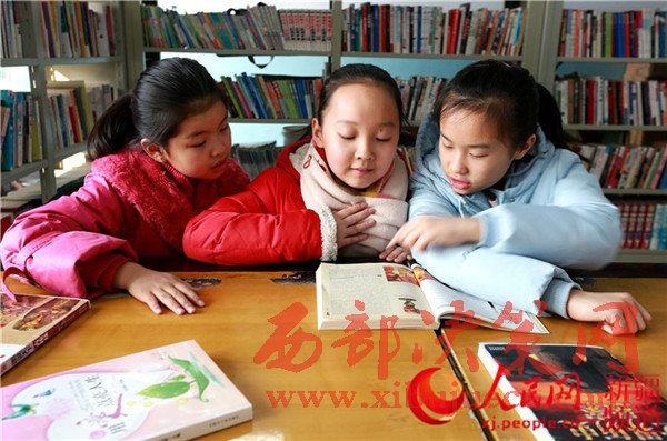 2月4日,新疆生產(chǎn)建設(shè)兵團第五師八十一團城鎮(zhèn)社區(qū)的農(nóng)家書屋里,學生們在閱讀自己喜愛的書籍。
