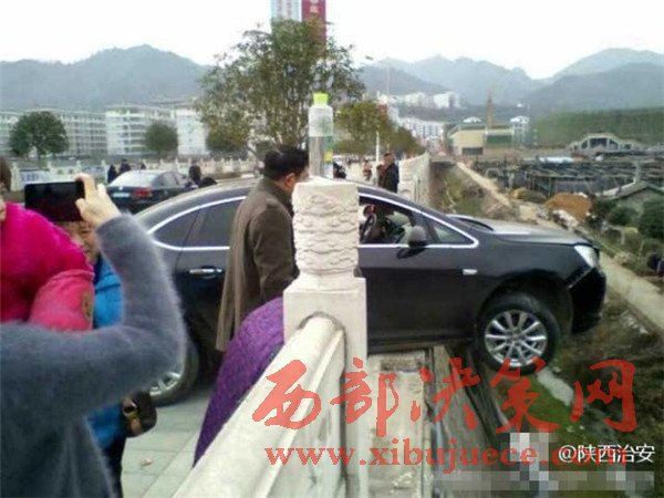 安康一男子開(kāi)車撞斷橋梁護(hù)欄 車身懸空在大橋上