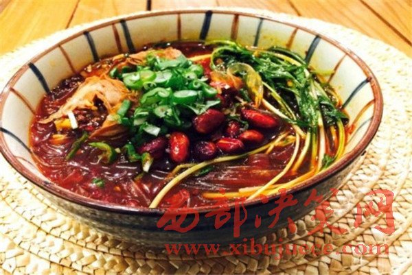 “重慶酸辣粉”是重慶城鄉(xiāng)間廣為流傳的傳統(tǒng)名小吃,主粉由紅薯、紅苕、豌豆按最佳比例調和,然后由農家用傳統(tǒng)手工漏制而成。
