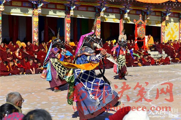 12日,四川阿壩縣的郎依寺格外熱鬧,一大早不少身穿傳統(tǒng)服飾的藏族群眾前來參加“莫郎節(jié)”活動。據(jù)悉,在跳神儀式上,頭戴面具、身穿法衣的舞者手持各式法器,在長法號、羊皮鼓等樂器的伴奏下跳起古老的舞步,為新年祈福。