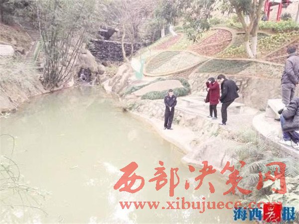 據(jù)落水男孩介紹,2月9日傍晚,他和其他兩個小伙伴在龍海市石碼鎮(zhèn)紫云公園望江亭旁的水塘邊玩耍,他沿著鄰水斜護坡行走,想爬到旁邊的石龜背上玩,不慎失足落入水中。