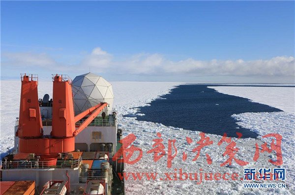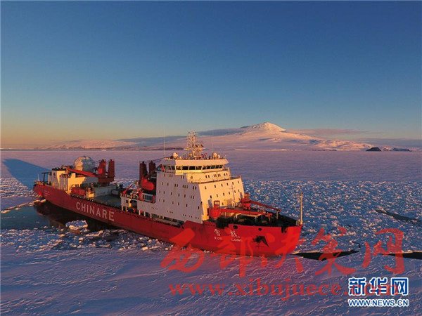 破冰前往麥克默多灣方向的“雪龍”號科考船(2月9日攝)。