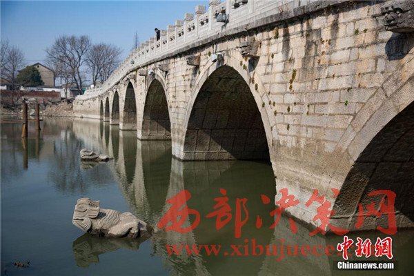 2月15日,位于南京城東運(yùn)糧河上的明代古橋七橋甕橋墩上長期隱藏水中的四只“怪獸”露出了水面,據(jù)南京城市史學(xué)者胡卓然介紹,這是古人設(shè)計在橋的分水墩上的分水獸,不僅能分水,減輕水流對橋體的沖擊,同時還標(biāo)出了航道,能防止河中的行船撞上橋墩和橋體。據(jù)了解,七橋甕始建于明代,全長89.6米,高25米,橋身酷似彎弓,共有七個橋甕,時間一長,“七橋甕”的名字被叫開了。