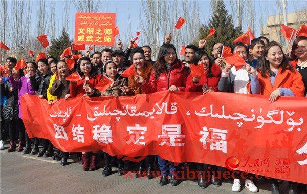 “聽黨指揮、能打勝仗、作風(fēng)優(yōu)良!”參加誓師大會的全體維穩(wěn)力量聲震長空,有力宣示了全疆各族干部群眾堅(jiān)定不移貫徹社會穩(wěn)定和長治久安總目標(biāo)的堅(jiān)定決心,展示了各維穩(wěn)力量忠誠勇敢、無堅(jiān)不摧、敢打必勝的強(qiáng)大戰(zhàn)斗力,彰顯出新疆各族人民同仇敵愾、堅(jiān)決戰(zhàn)勝暴恐分子的共同意愿。