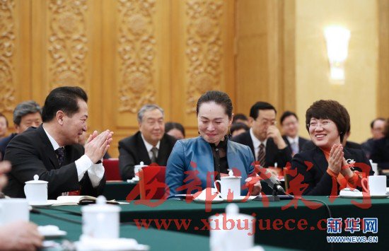3月7日,遼寧代表團(tuán)的馮玉萍代表(前中)在發(fā)言時(shí)激動(dòng)不已。在兩會會場內(nèi)外,女代表、女委員、女工作人員、女記者在工作中盡職盡責(zé),展現(xiàn)著自己的風(fēng)采。