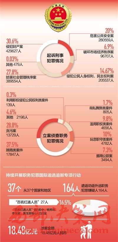 去年一年,檢察機(jī)關(guān)共立案?jìng)刹槁殑?wù)犯罪47650人,其中包括21名原省部級(jí)干部,對(duì)令計(jì)劃、蘇榮等48名原省部級(jí)以上干部提起公訴。檢察機(jī)關(guān)繼續(xù)開(kāi)展集中整治和加強(qiáng)預(yù)防扶貧領(lǐng)域職務(wù)犯罪專(zhuān)項(xiàng)工作,查辦相關(guān)職務(wù)犯罪1892人,同比增長(zhǎng)102.8%。此外,還在征地拆遷、社會(huì)保障等民生領(lǐng)域查辦“蠅貪”“蟻貪”17410人。