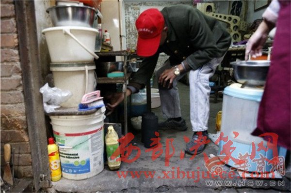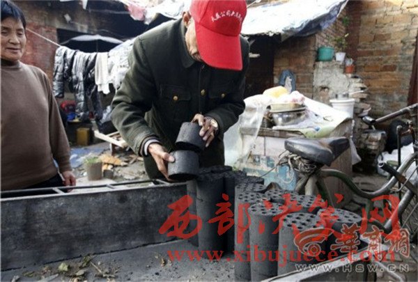 一進(jìn)門,看見61歲的夏平安坐在門房里,端著個大老碗正在吃面。華商報(bào)記者問:“自己做的面?”他停止吃面,頭一抬,慢慢地說:“老板做的。”他待的是煤場門房,也是他的宿舍,屋子里靠墻擺著一張單人床,上面鋪著厚厚的被褥。院子里堆了好多已經(jīng)打好的煤球。