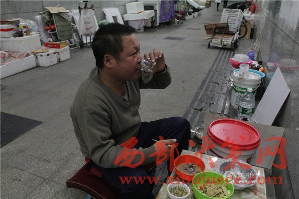81歲的付林林現(xiàn)在晚上不出去撿廢品,一個同情他的餐館老板,每天給他送飯菜。