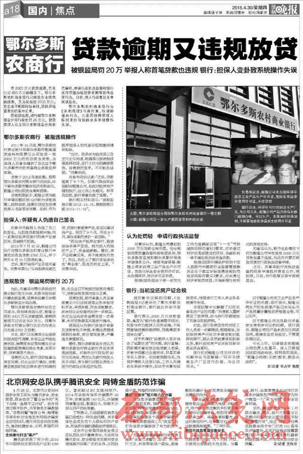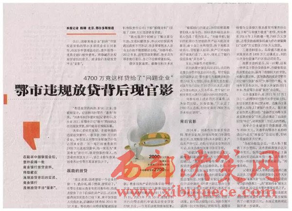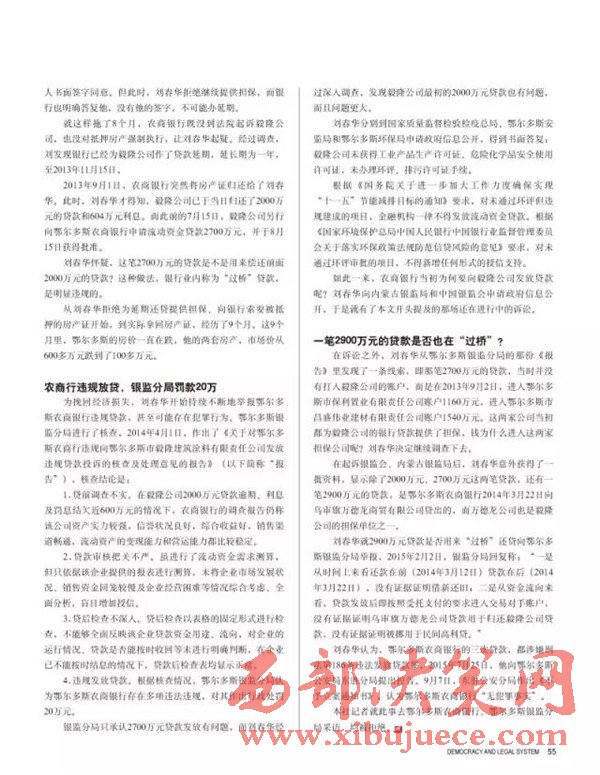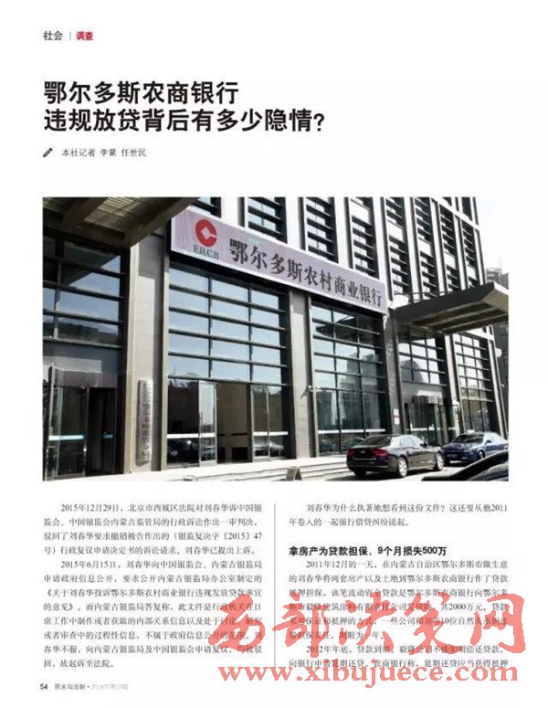 2、在內(nèi)蒙古自治區(qū)紀委監(jiān)督之下內(nèi)蒙古銀監(jiān)局查出鄂爾多斯農(nóng)商銀行發(fā)放的2000萬、2700萬、2900萬三筆貸款屬于違規(guī)貸款;