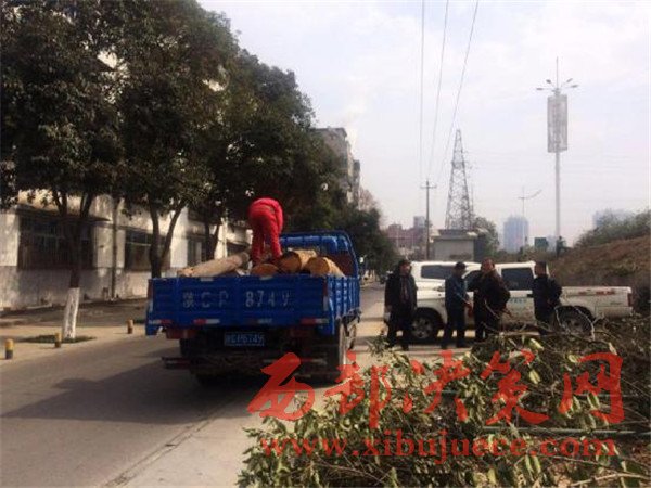 據(jù)了解,砍樹的人講這個(gè)地方要做工程,有人請(qǐng)他們把這些樹木砍了。所砍木料被賣給了木材加工廠,現(xiàn)場的車輛及裝車人員都是渭濱區(qū)高家村某木材廠的人員??硺洮F(xiàn)場未發(fā)現(xiàn)有市政和園林環(huán)衛(wèi)部門的管理人員。