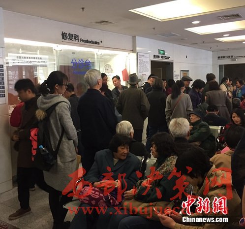圖為市民們在北京大學口腔醫(yī)學院大廳排隊掛號。